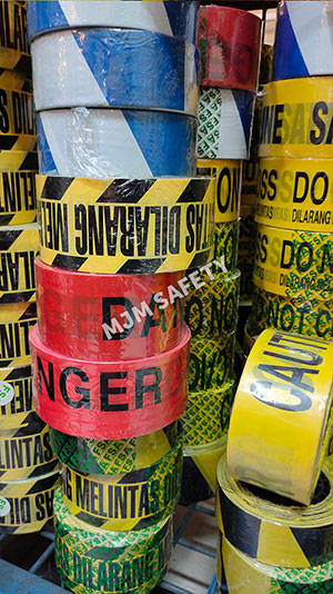 Tulisan DANGER, CAUTION DO NOT ENTER, DO NOT CROSS, DILARANG MELINTAS, SAFETY LINE